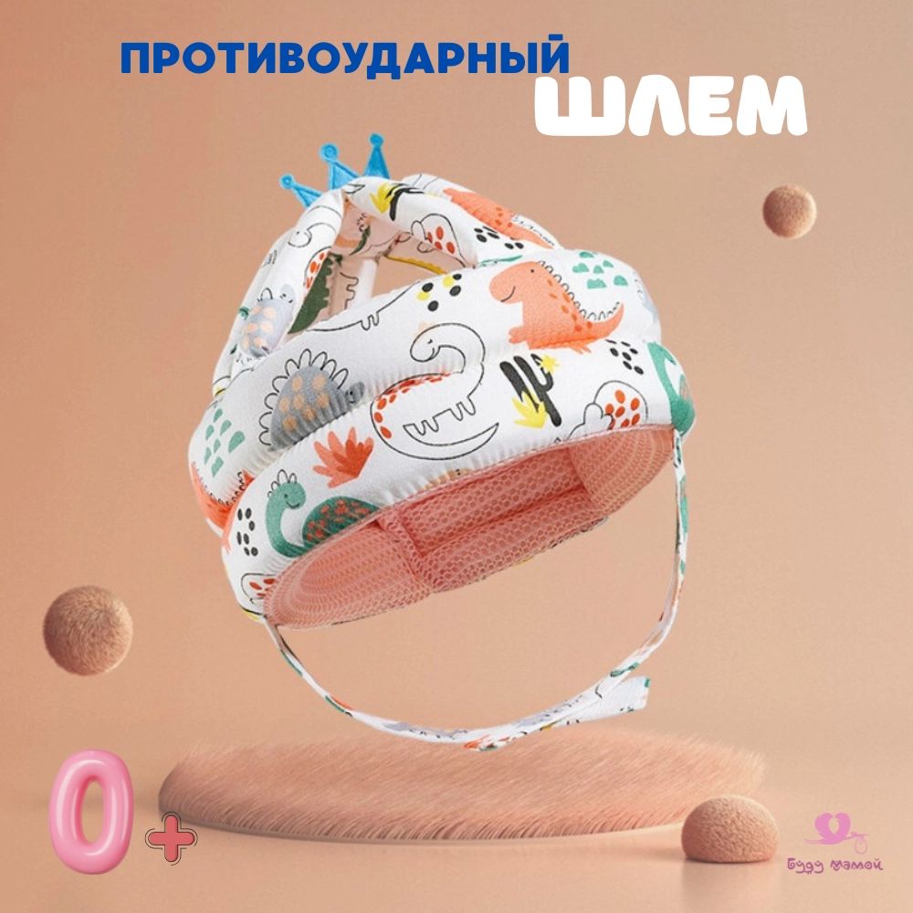 Шлем-шапка детская, противоударная для защиты головы малыша (динозавры)