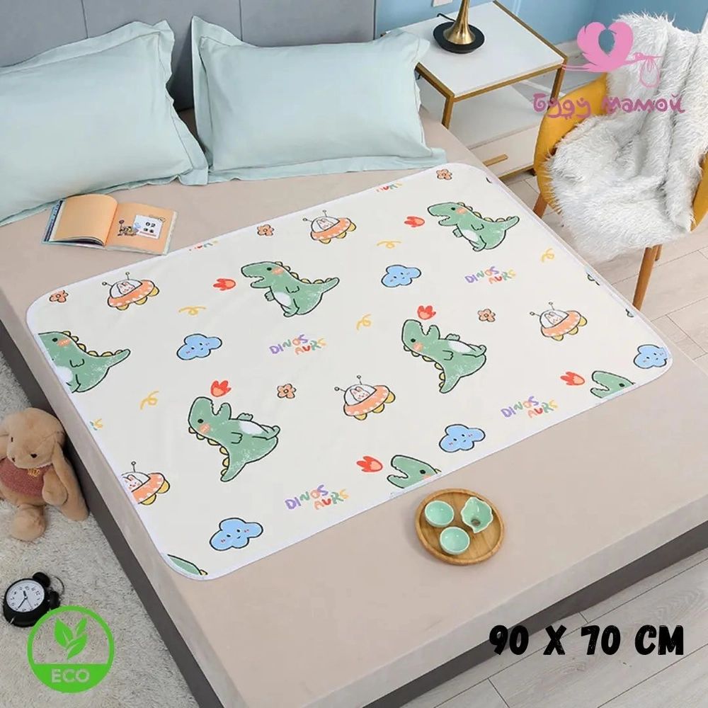 Многоразовая непромокаемая пеленка, 90*70 см, Динозаврики