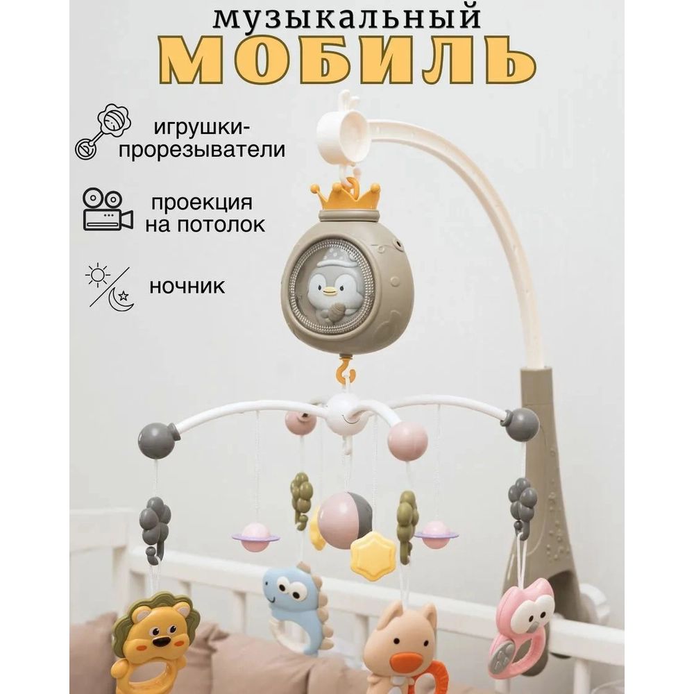 Мобиль в кроватку для новорожденного музыкальный С НОЧНИКОМ И ПРОЕКТОРОМ.