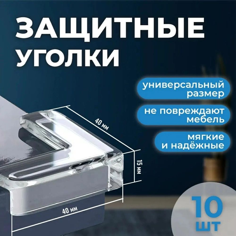 Защитные уголки на мебель - силиконовые накладки на стол (защита для детей), г - уголок, цвет прозрачный, 10 шт.