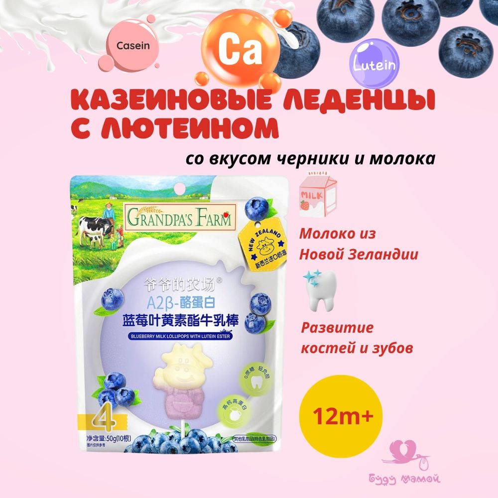 Казеиновые леденцы с лютеином со вкусом черники и молока, 10шт.