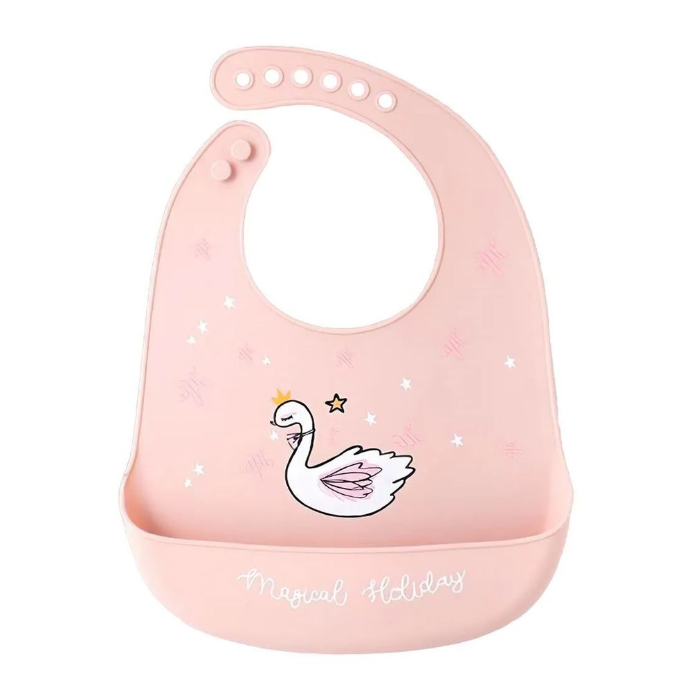 LEMLEO Слюнявчик детский, нагрудник для кормления силиконовый с карманом, Лебедь, розовый