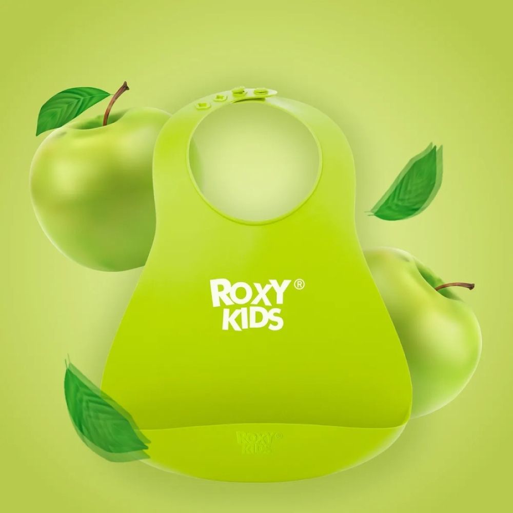 Слюнявчик детский, нагрудник для кормления ROXY-KIDS мягкий с кармашком и застежкой, цвет зеленый