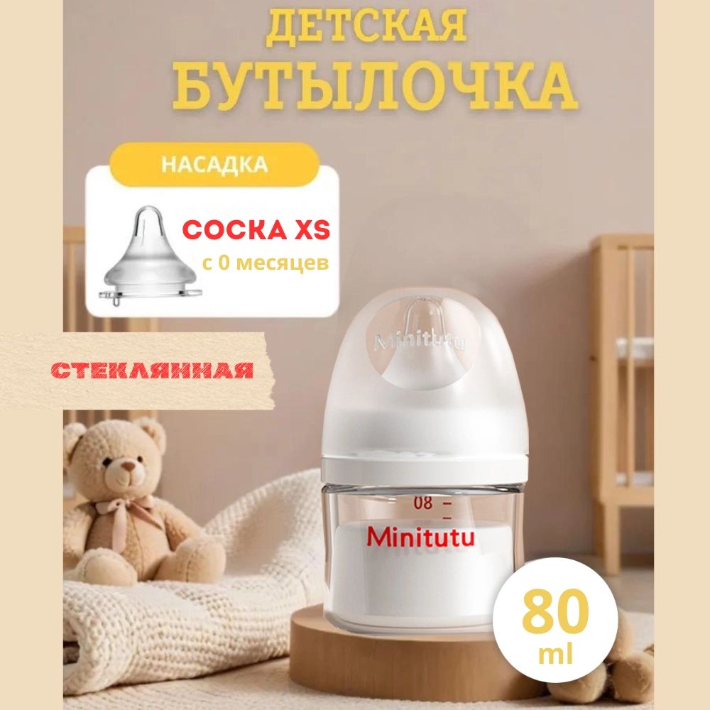 Стеклянная бутылочка для кормления Minitutu, 80 ml (0+)