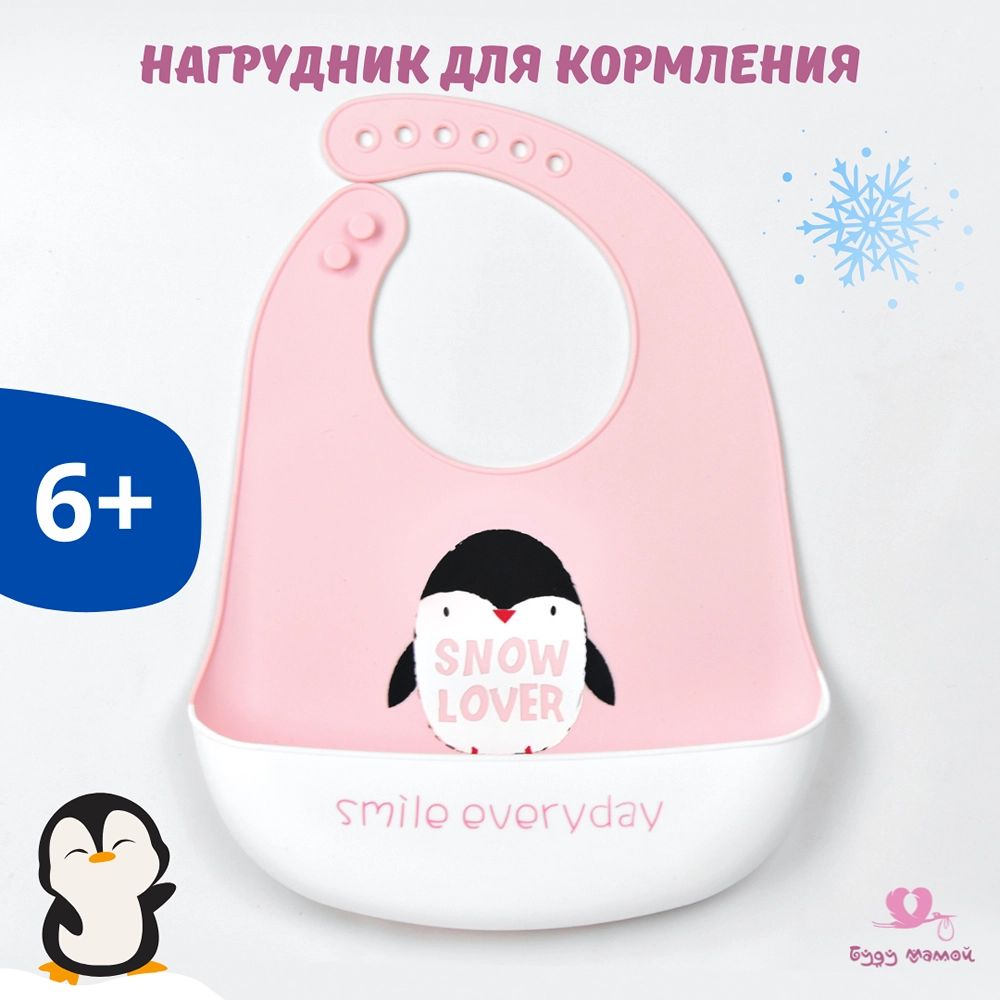 Нагрудник для кормления силиконовый с карманом, пингвин