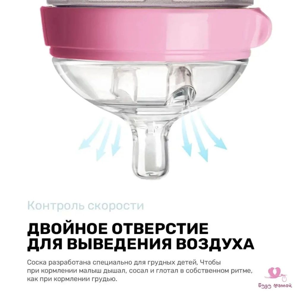 ▫️Соска бутылочки содержит в себе два отверстия для воздуха, что позволяет младенцу не прикладывать усилий для питания.