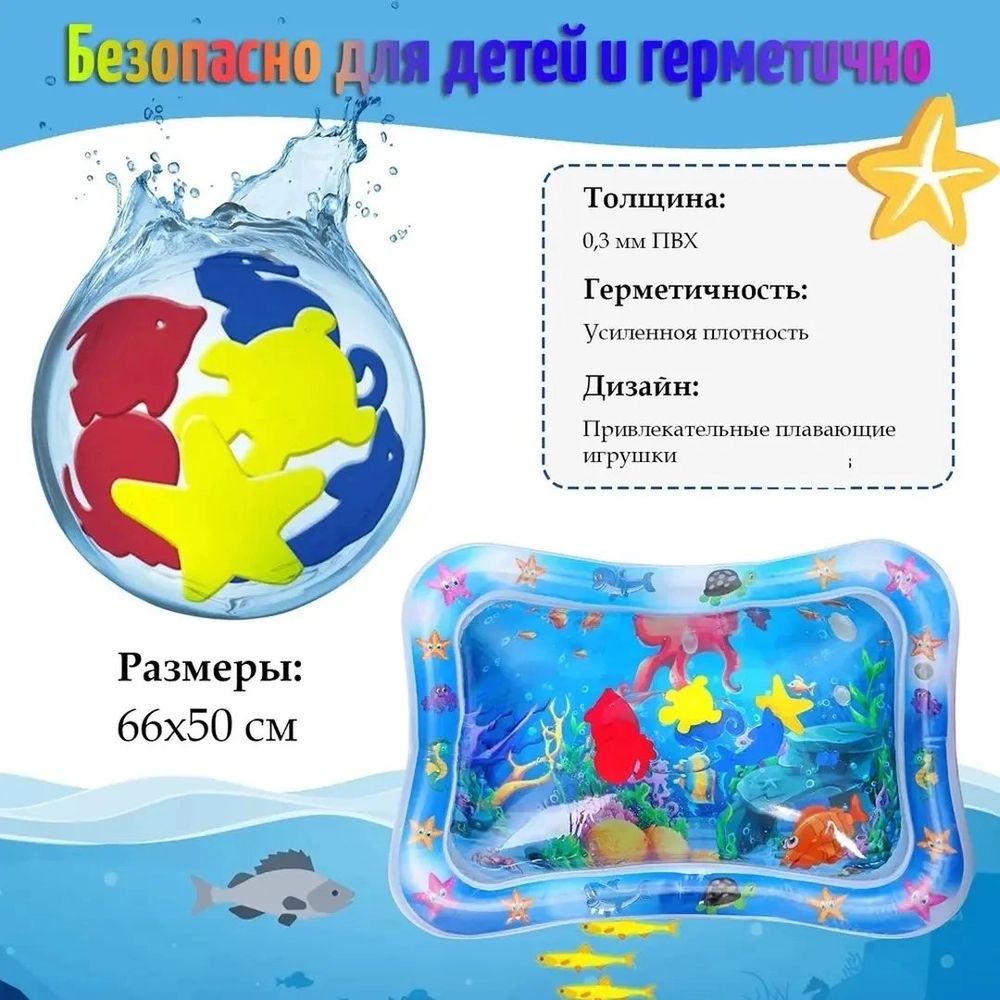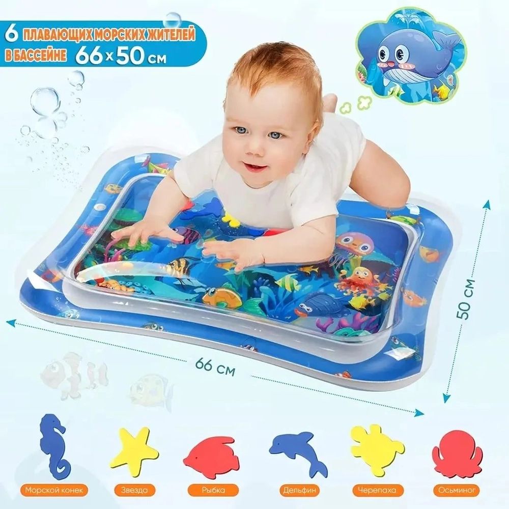 🔸 Акваковрик имеет большой размер – 66 на 50 и на 8 см, что позволяет малышу удобно на нем разместиться.