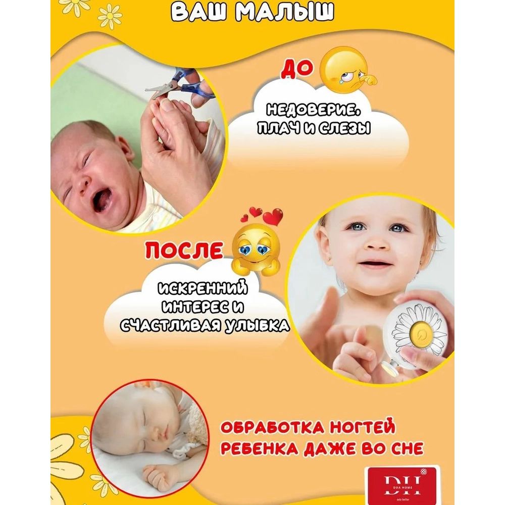 🔸️Теперь вы можете быть спокойны за безопасность вашего ребенка. За счет бесшумного шлифования, вы сможете безошибочно удалить все острые края и заостренность, предотвращая возможные травмы. Не забудьте также о гигиене. 🔸️Несмотря на то, что повреждение тела ребенка уменьшилось с использованием электропилки, на поверхности ногтей все еще скрывается грязь и бактерии. С помощью нашего триммера вы сможете безопасно полировать ногти вашего ребенка, поддерживая их чистыми и гигиеничными.