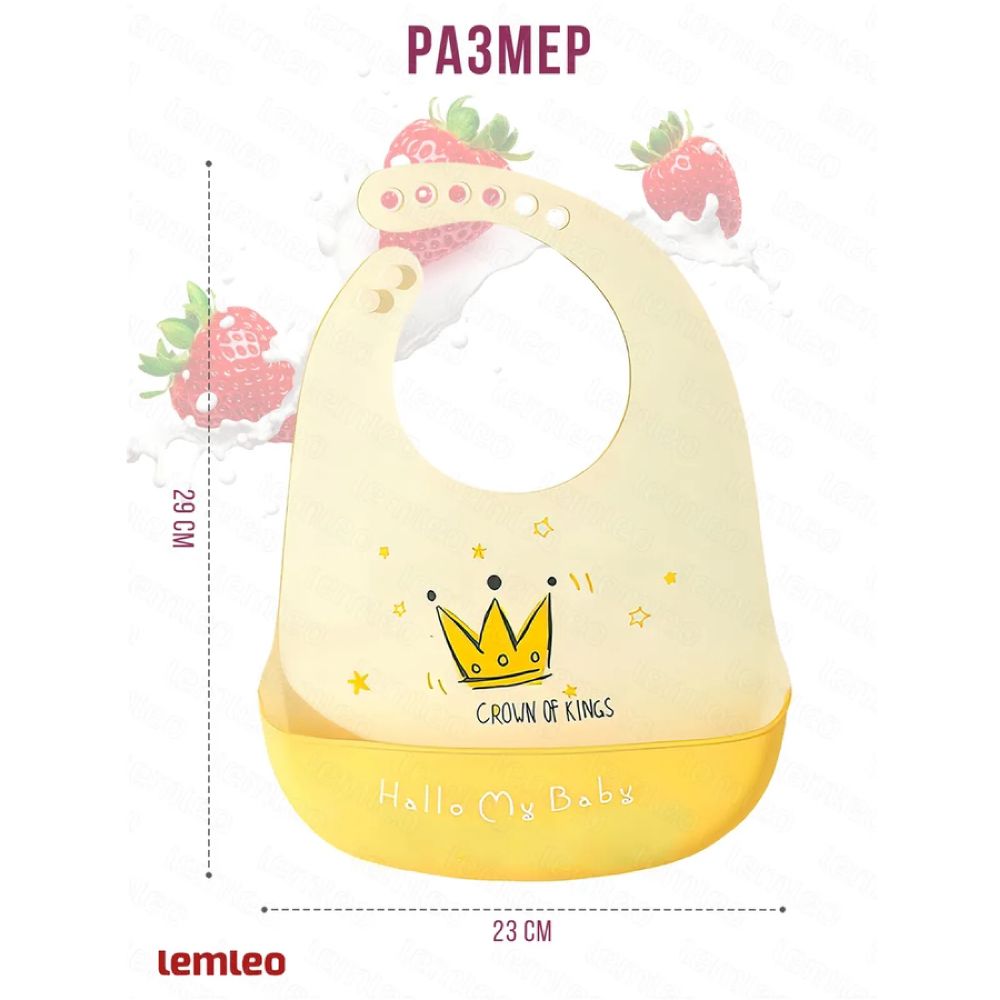 LEMLEO Слюнявчик детский, нагрудник для кормления силиконовый с карманом, Корона