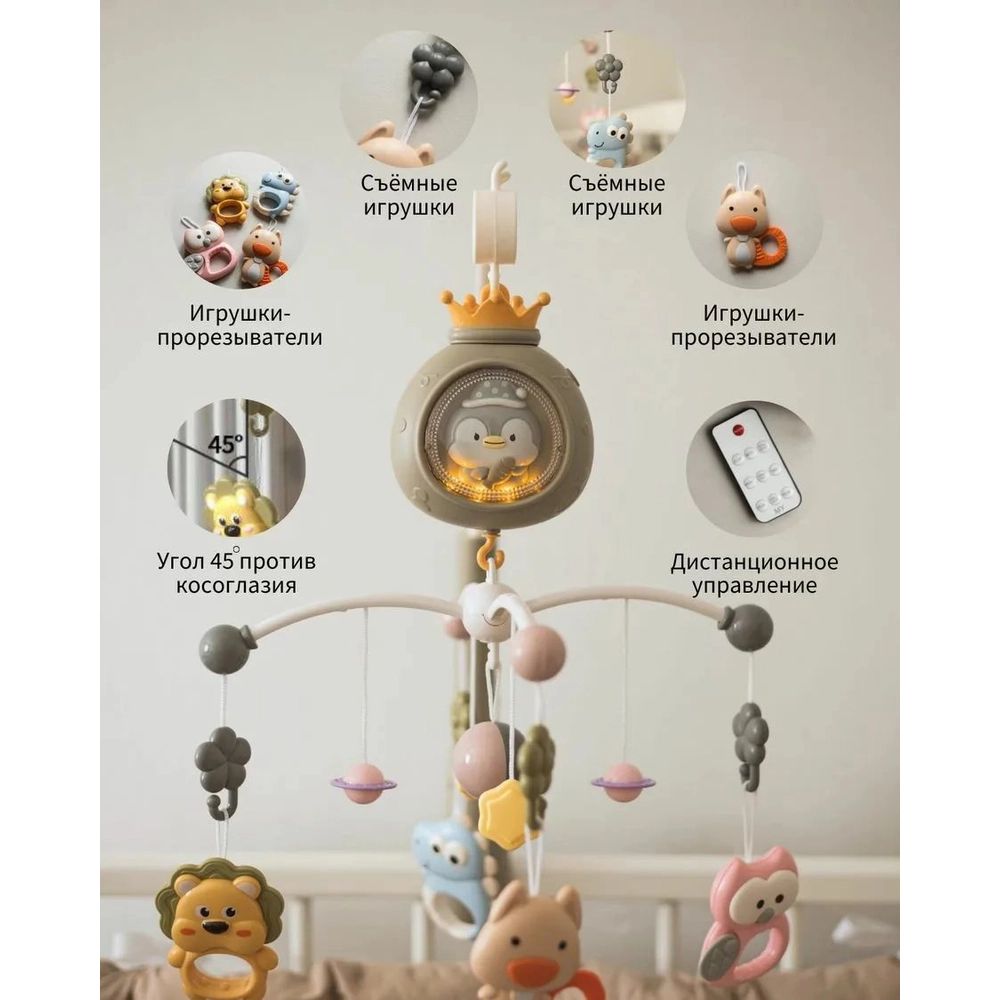 🔸️Мобиль на кроватку имеет пульт дистанционного управления. Милые зверята и фигурки на мобиле несомненно привлекут внимание Вашего Малыша. Также игрушки являются съемными и будут служить погремушками и грызунком.