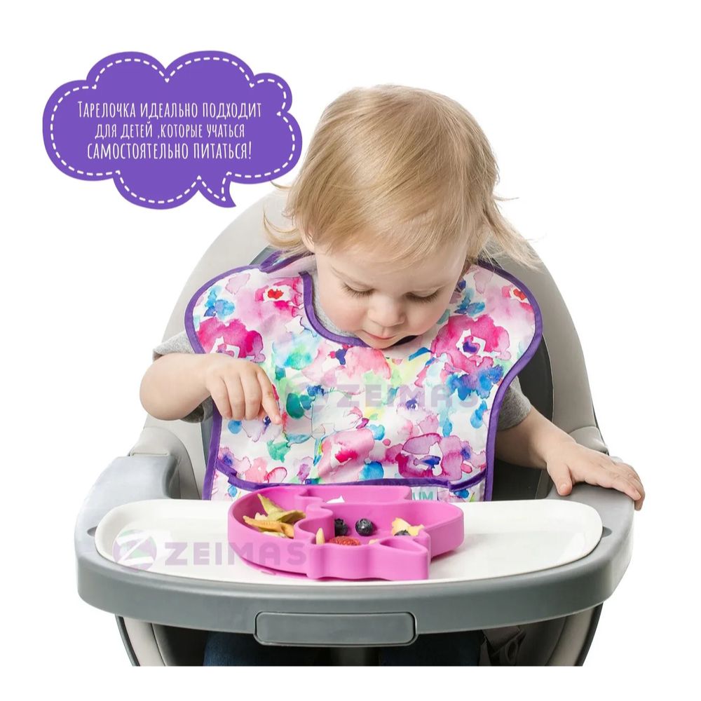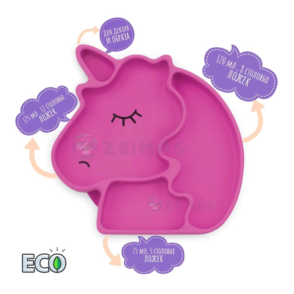 Силиконовая тарелка Zeimas «Единорог» + ложечка в подарок, идеально подходит для детей, которые учатся самостоятельно питаться. Сильная основа всасывания гарантирует, что тарелка не перевернётся - даже с самым активным малышом. Отлично подходит для использования на подносах или столах-стульчиках. Разделительные секции на тарелке соответствуют размеру маленьких порций еды.