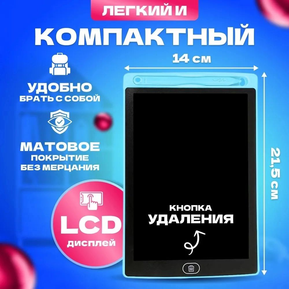 🔸Планшет будет незаменимой вещью для ребенка, увлекая его в дороге. Удобная альтернатива бумажным блокнотам, липким стикерам, и другим средствам для записи и рисования. Планшет безопасен для детей и безвреден для глаз малыша! Рисовать одно удовольствие, а чтобы удалить записи или рисунок достаточно нажать всего лишь одну кнопку.