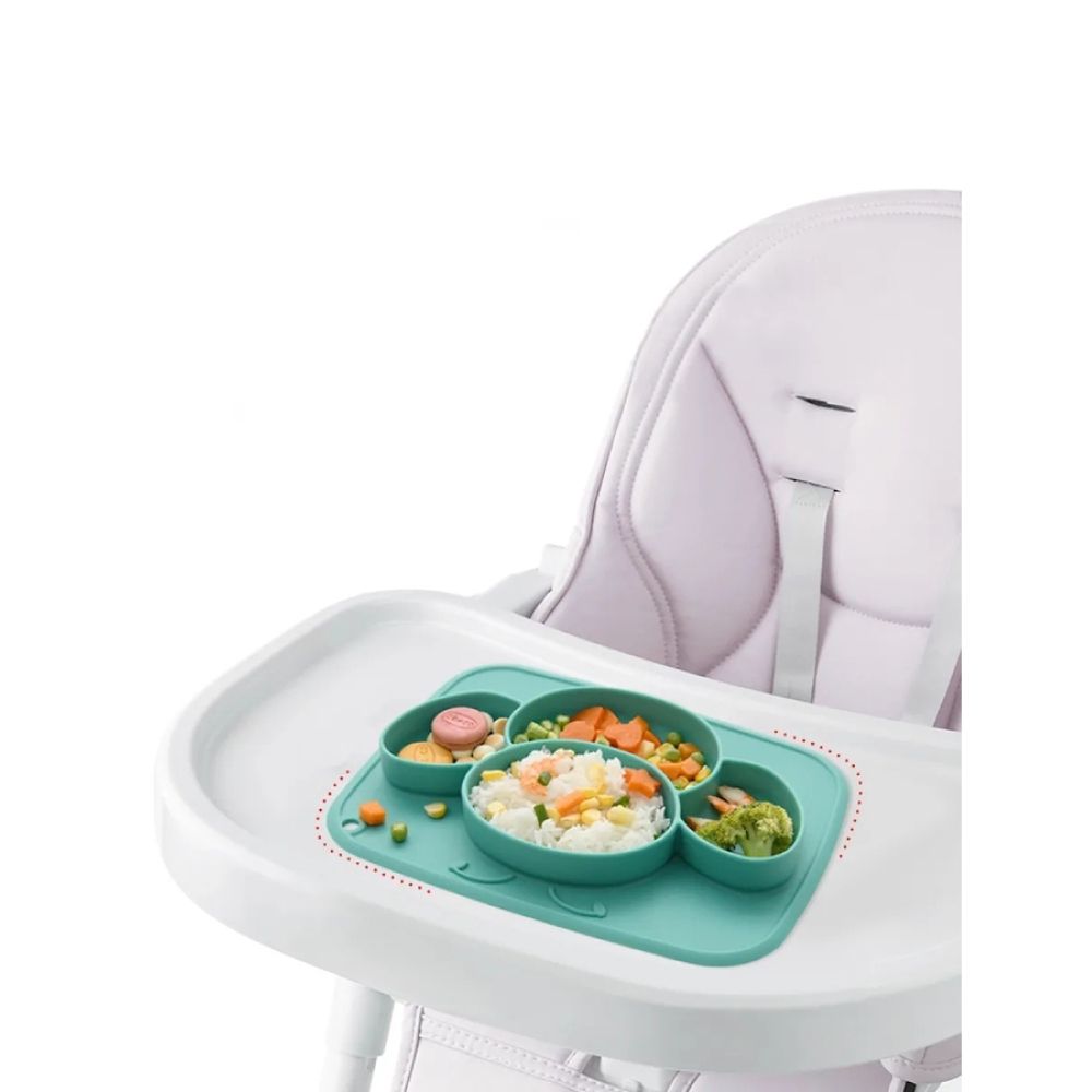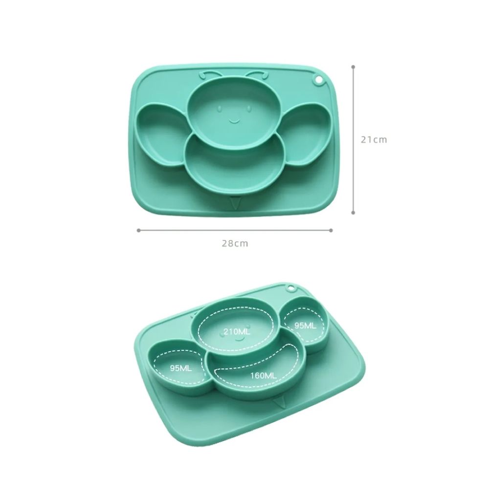 Силиконовая Секционная тарелка-коврик с эффектом присоски в форме пчелы Данная тарелка-коврик сделала по специальной технологии, имеет гладкое и ровное дно, и когда ложится на чистую, ровную и гладкую поверхность, создаётся вакуум и эффект присоски.