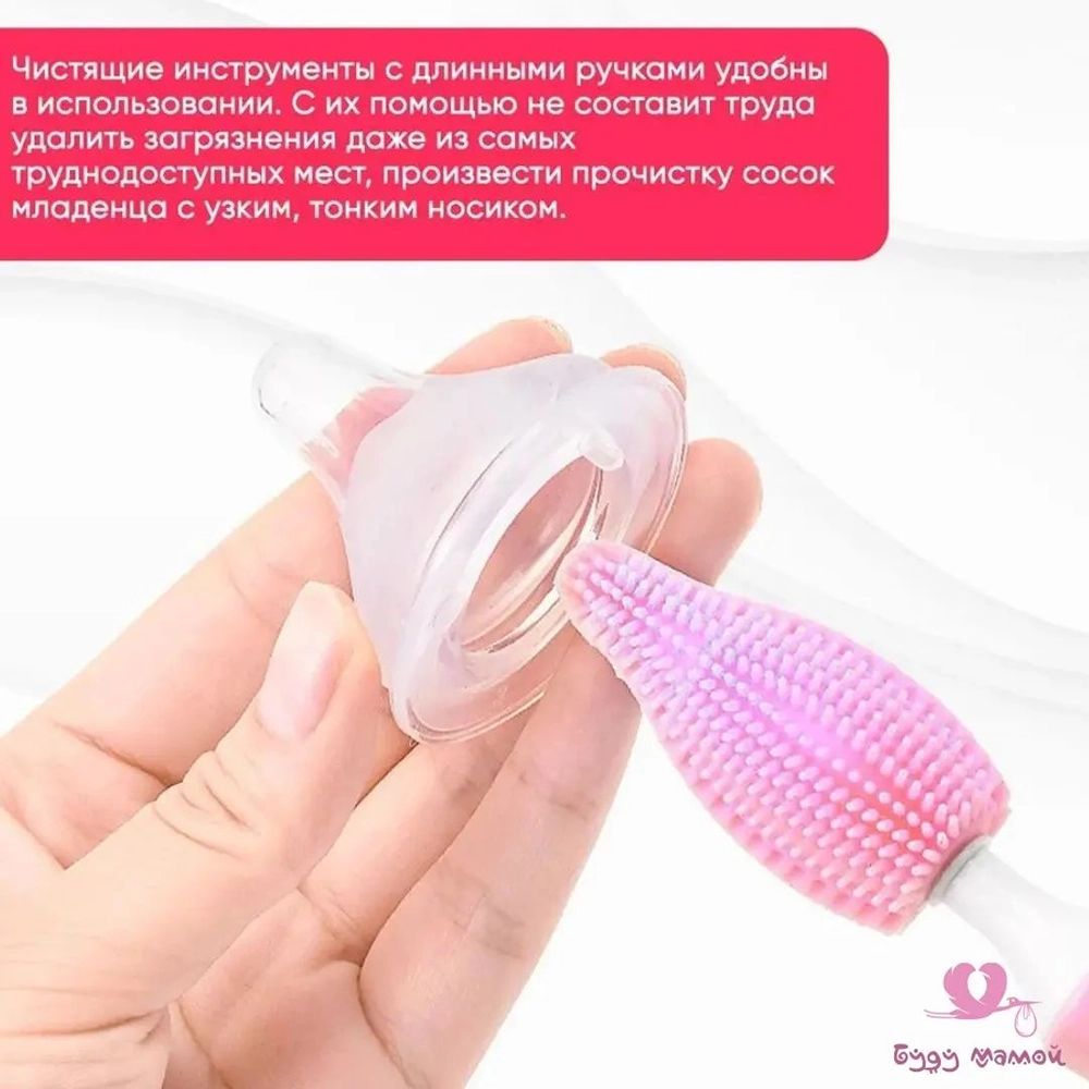 🔸️Набор для мытья бутылочек 3 в 1- незаменимый помощник для мам. Он изготовлен из безопасного силикона и идеально подходит для чистки бутылок, которые используются для кормления новорожденных малышей. Чистящие инструменты с длинными ручками невероятно удобны в использовании. С их помощью не составит труда удалить загрязнения даже из самых труднодоступных мест, произвести прочистку сосок младенца с узким, тонким носиком.