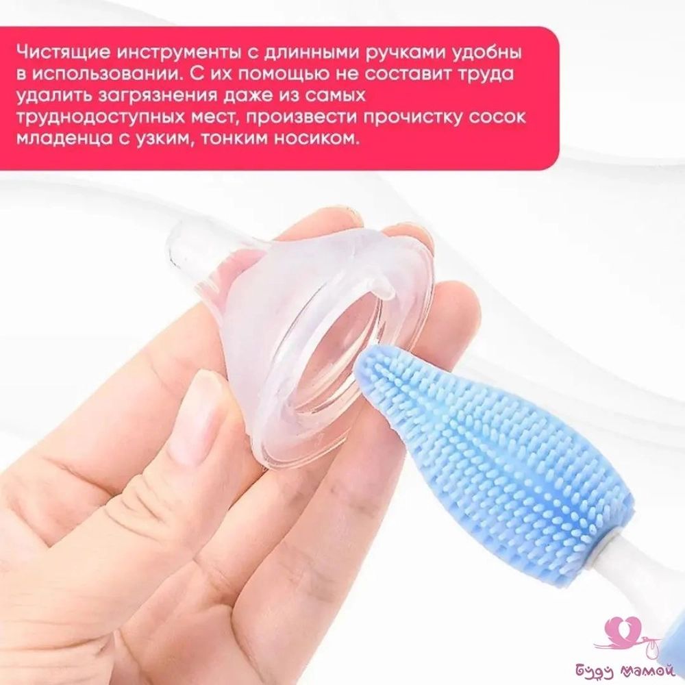 🔸️Набор для мытья бутылочек 3 в 1- незаменимый помощник для мам. Он изготовлен из безопасного силикона и идеально подходит для чистки бутылок, которые используются для кормления новорожденных малышей. Чистящие инструменты с длинными ручками невероятно удобны в использовании. С их помощью не составит труда удалить загрязнения даже из самых труднодоступных мест, произвести прочистку сосок младенца с узким, тонким носиком.
