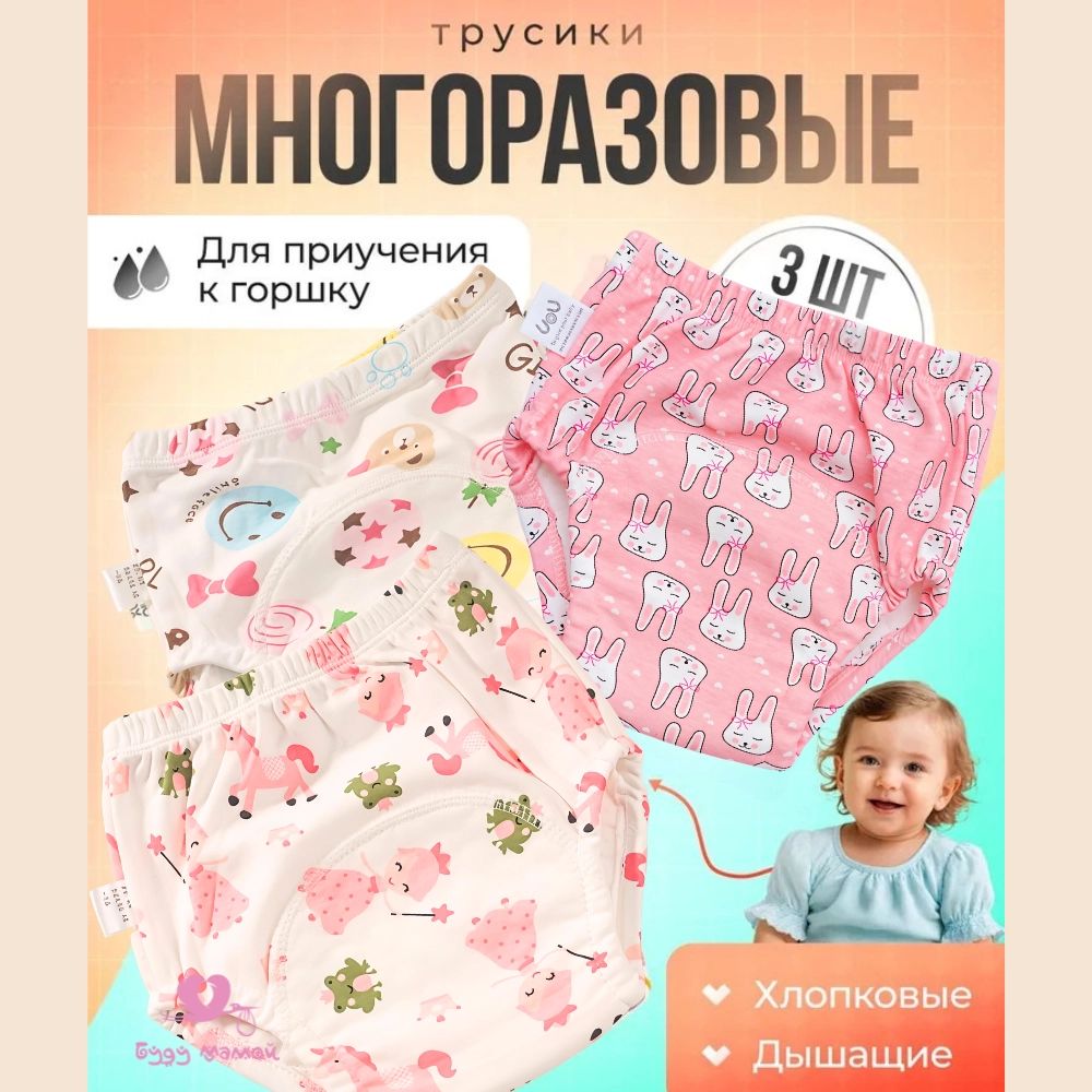 Трусики для приучения к горшку для девочки, 3 шт. M (100см)