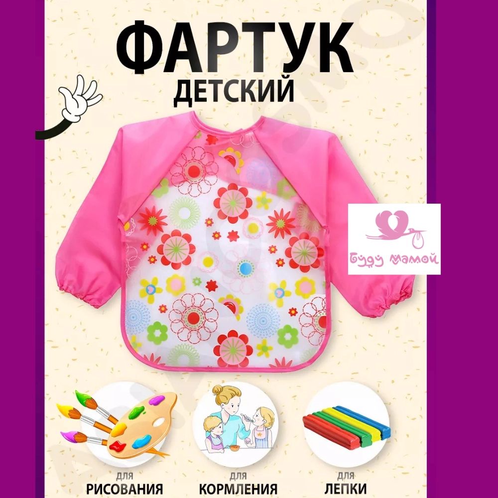 Фартук детский с рукавами, цветочки