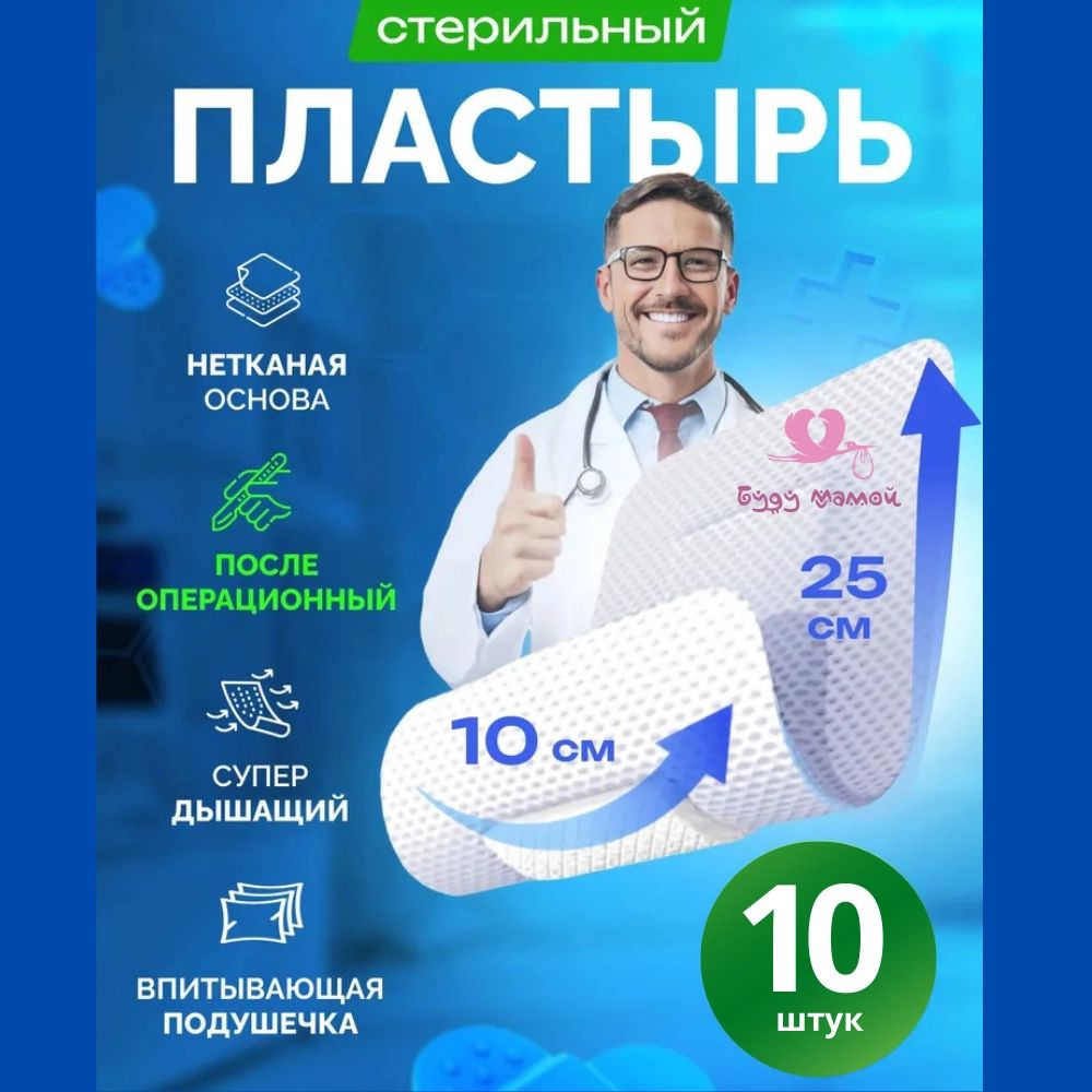 Пластырь стерильный послеоперационный на рану 25х10 см, 10 шт