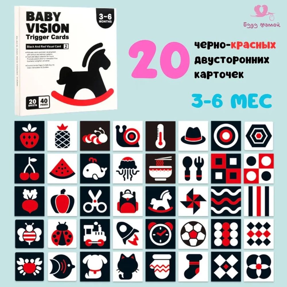 Контрастные карточки для малыша от 6 до 12 мес.