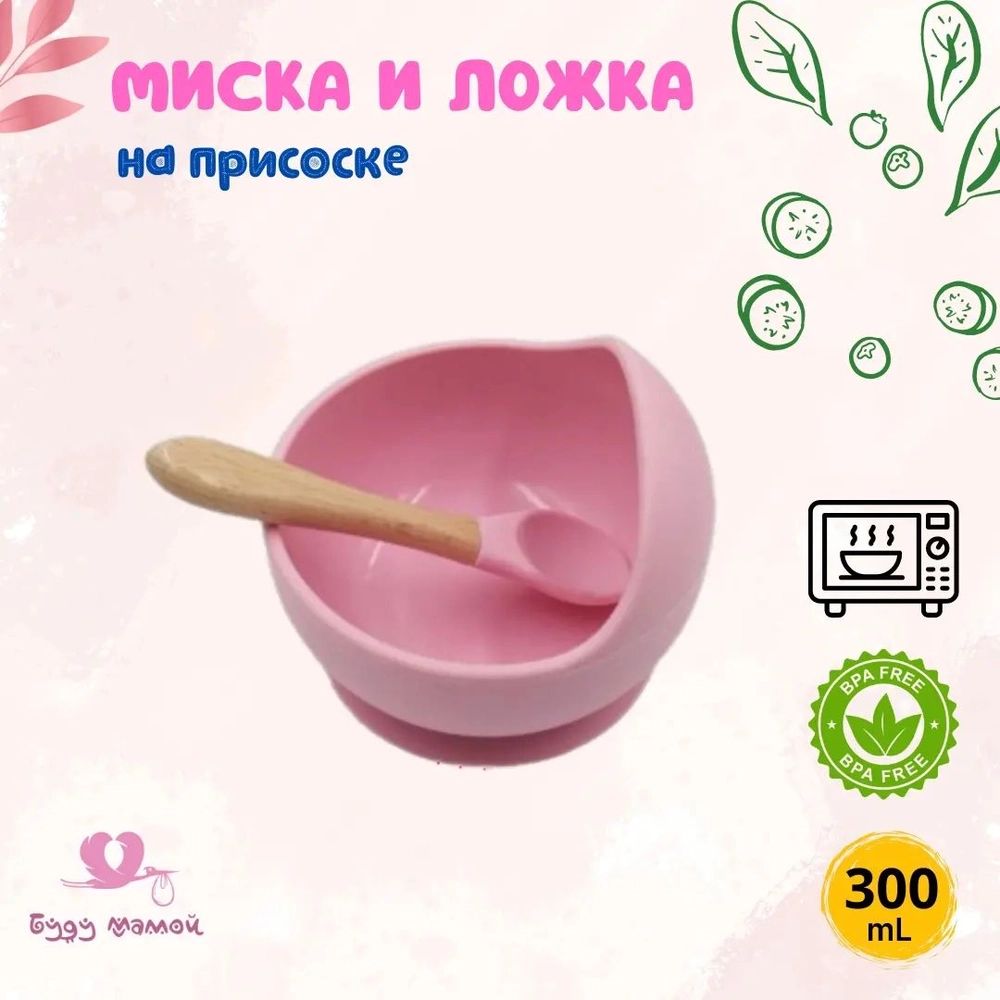 Набор детской посуды для кормления малыша (миска + ложка), розовый
