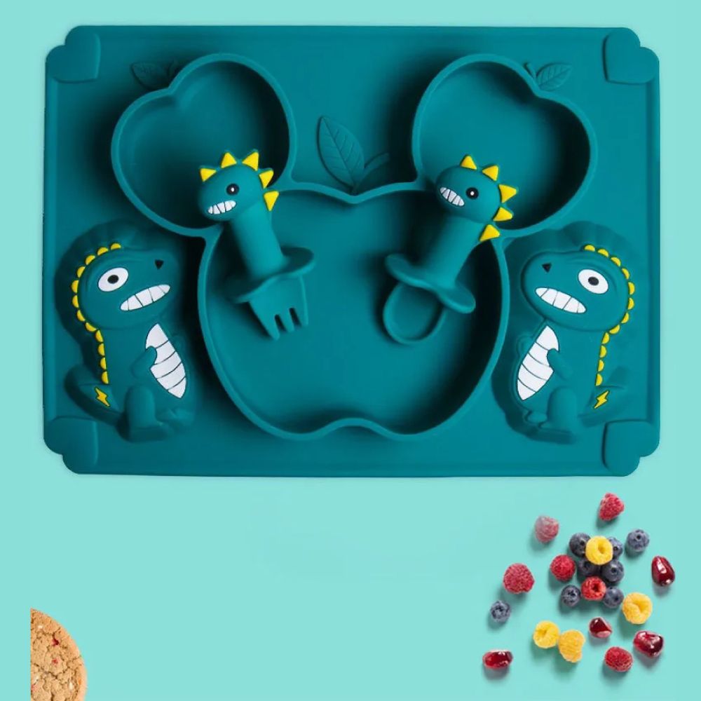 Набор для кормления силиконовый на присоске , Динозавр, 5 предметов