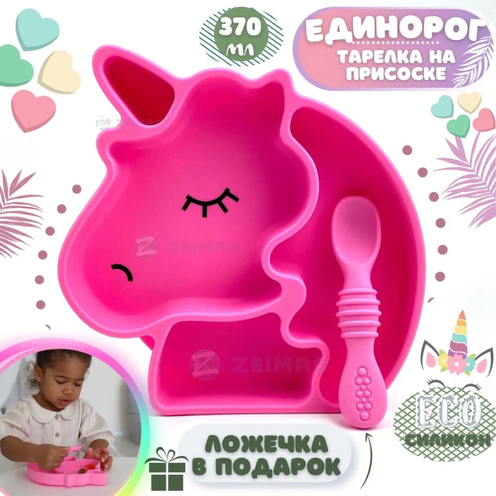 Набор детской силиконовой посуды на присоске Zeimas (Единорог)